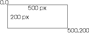 Een korte uitleg is misschien wel op z'n plaats. Het plaatje heeft een afmeting van 500x200 pixels. Anders dan gebruikelijk staat de oorsprong (0,0) linksboven. De rechteronderhoek heeft dus als coördinaten 500,200.Als we het plaatje in vier gelijke vlakken verdelen worden dit de coördinaten: